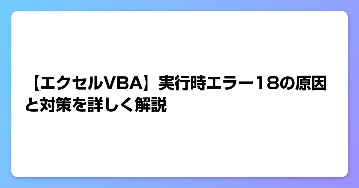 【エクセルVBA】実行時エラー18の原因と対策を詳しく解説