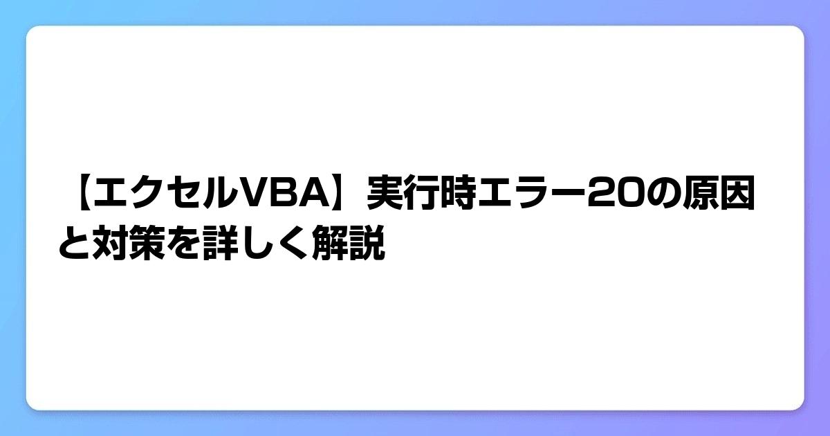 【エクセルVBA】実行時エラー20の原因と対策を詳しく解説