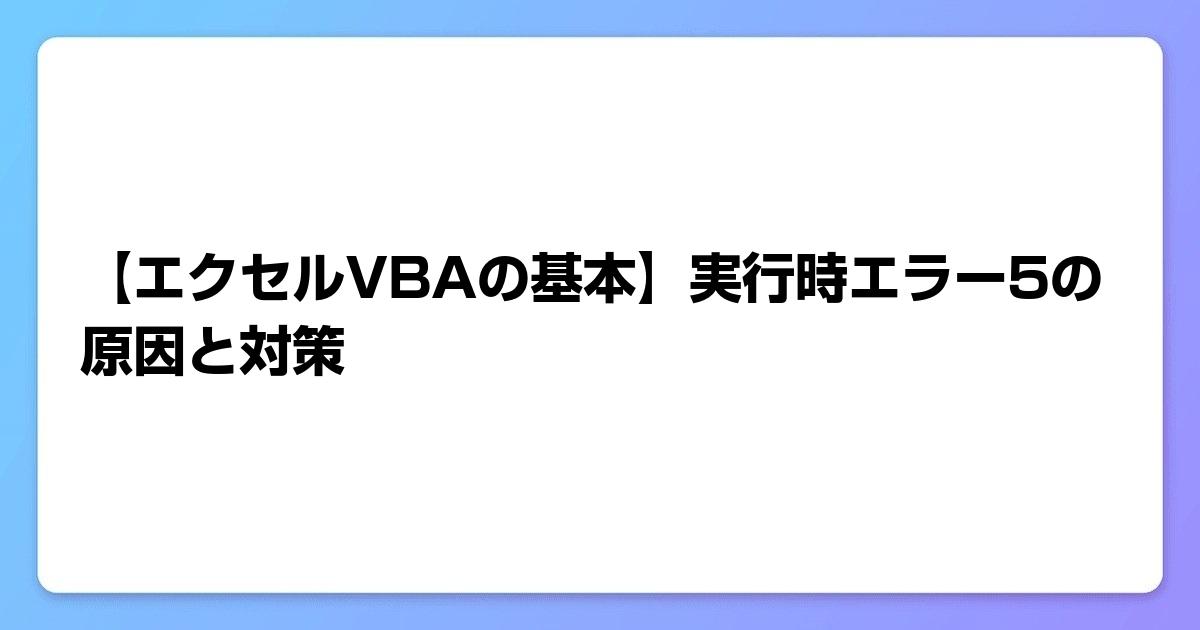 実行時エラー5は、「無効なプロシージャ呼び出しまたは引数」のエラーとして知られています。このエラーは、VBAコード内で不正または不適切な引数を使用した場合、またはVBAが期待する形式と異なる形式のデータを受け取った場合に発生します。主な原因は以下の通りです。