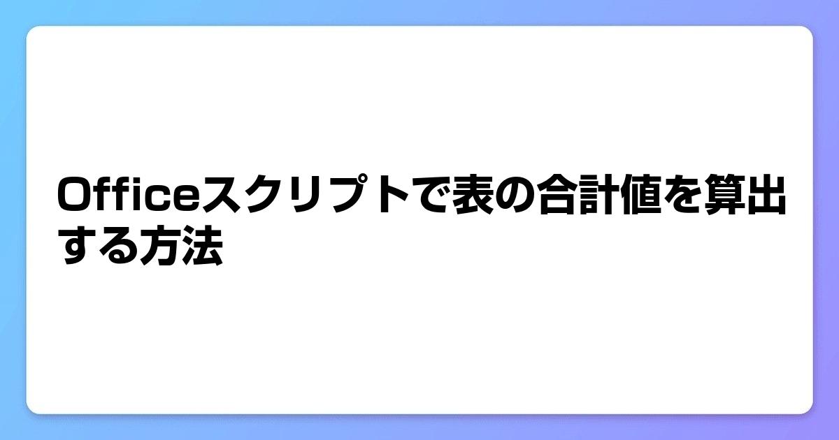 この記事では、Officeスクリプトを使用してExcelの表の合計値を算出する方法について学びました。重要なポイントを以下にまとめます。