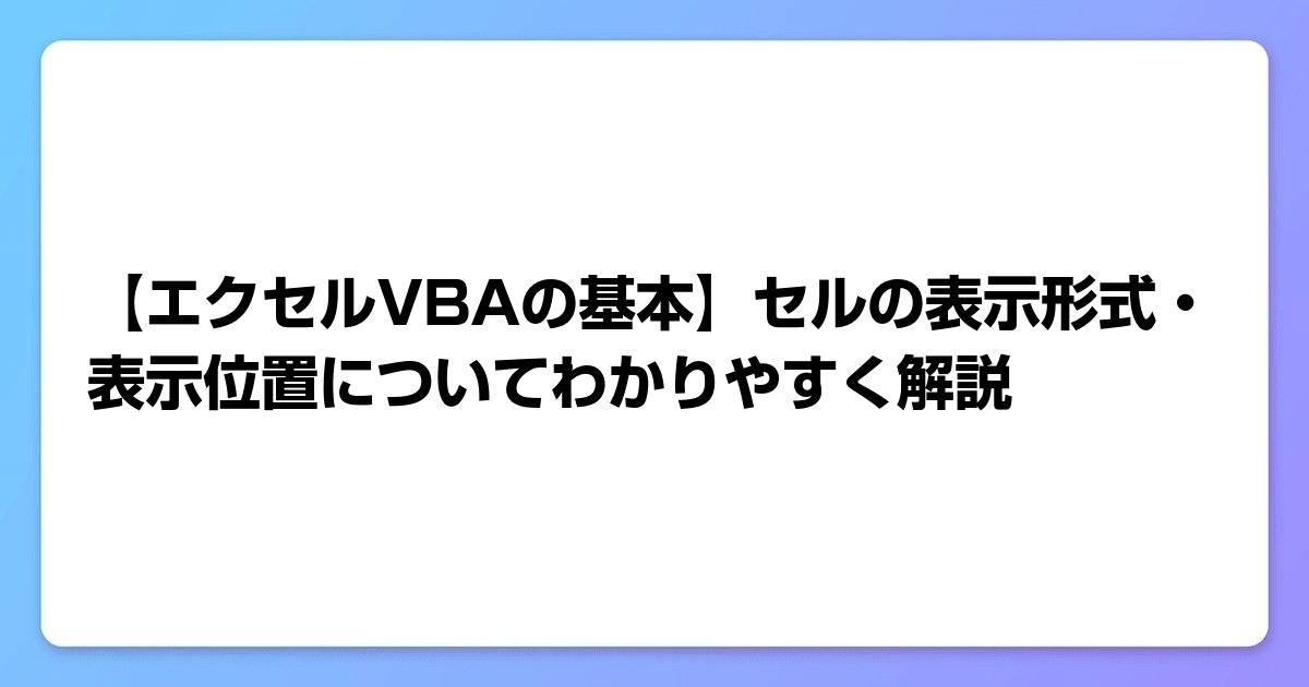 この記事では、エクセルVBAを使用してセルの表示形式と表示位置を設定する方法について学びました。重要なポイントは以下の通りです: