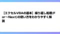 この記事では、Excel VBAにおけるDo~Loop構文の基本的な使い方について学びました。重要なポイントをまとめると: