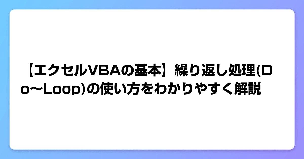 VBAにおけるDo~Loop構文は、特定の条件が満たされるまで、または特定の条件が満たされている間、コードのブロックを繰り返し実行するために使用されます。基本的な構造は以下の通りです: