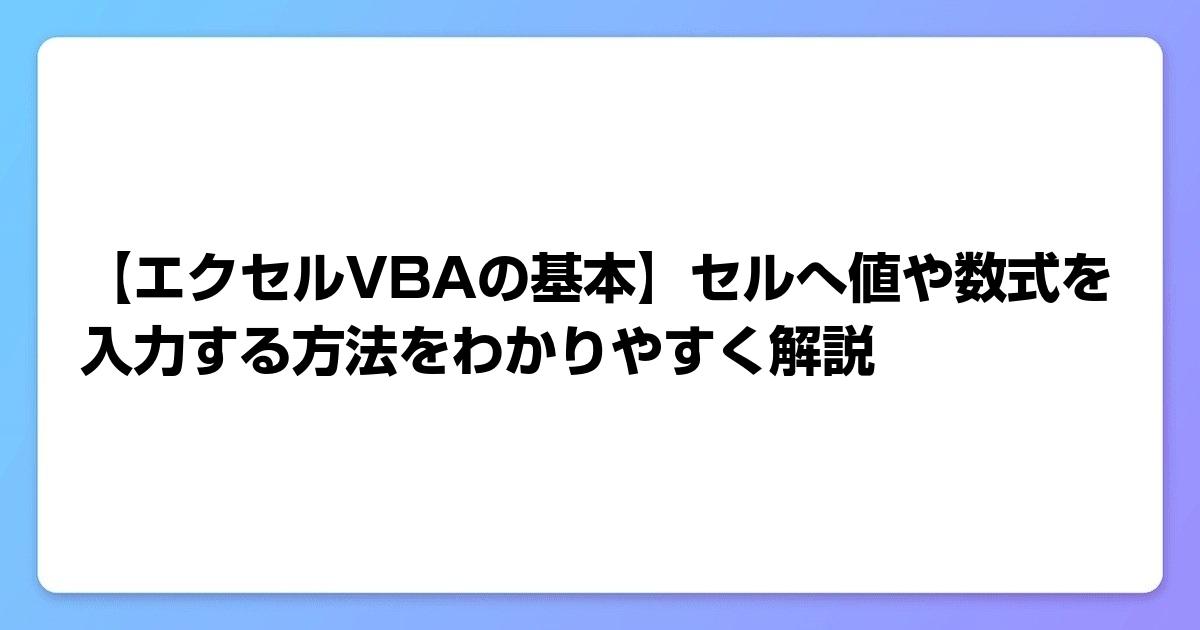 VBAを使ってエクセルのセルに値を入力する基本的な方法は、以下の通りです: