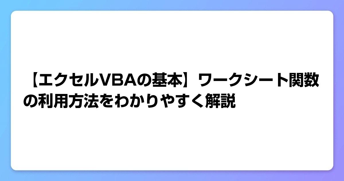 この記事では、エクセルVBAの基本的な概念と、ワークシート関数の利用方法について学びました。重要なポイントは以下の通りです: